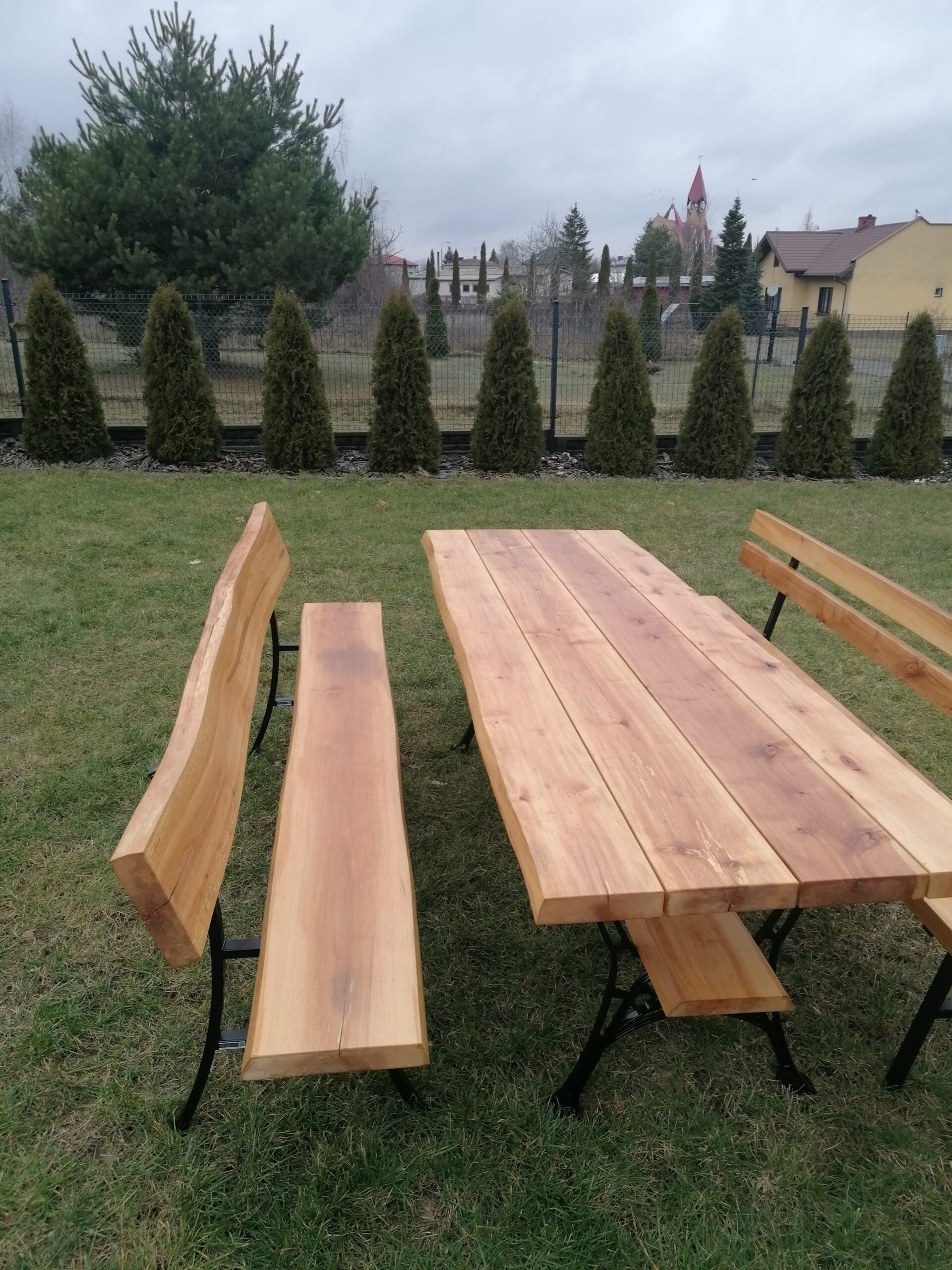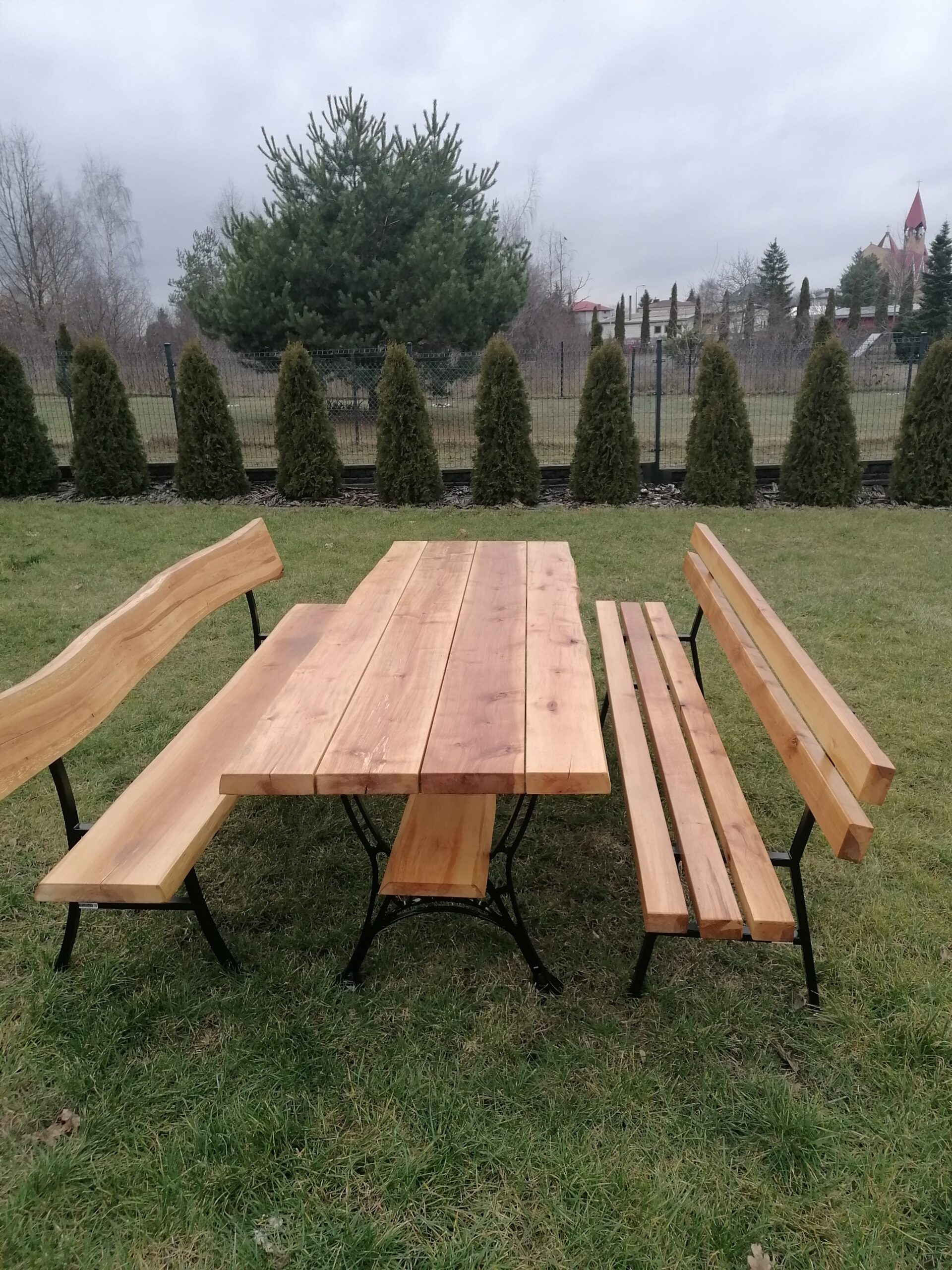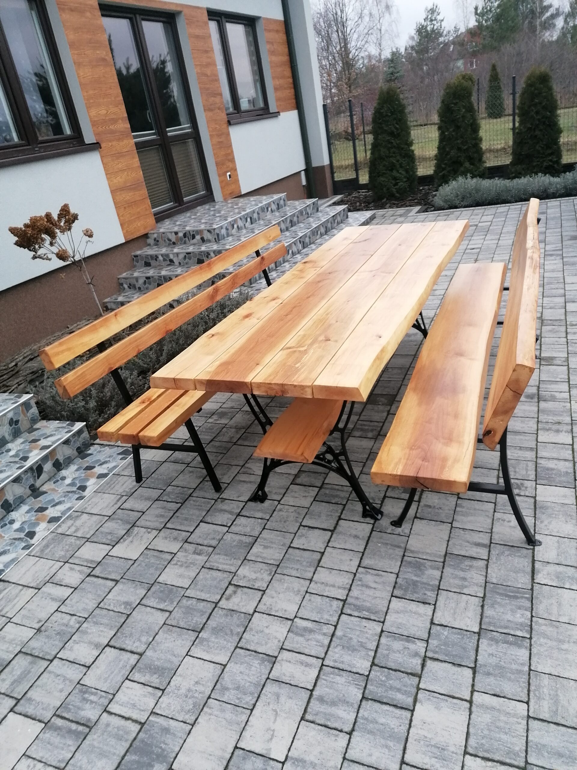 - Jedna szeroka deska na oparciu i jedna szeroka deska z naturalnym oflisem na siedzisku